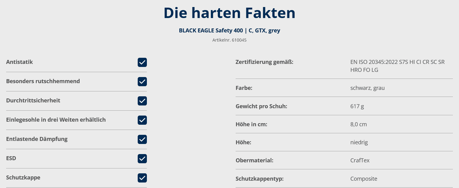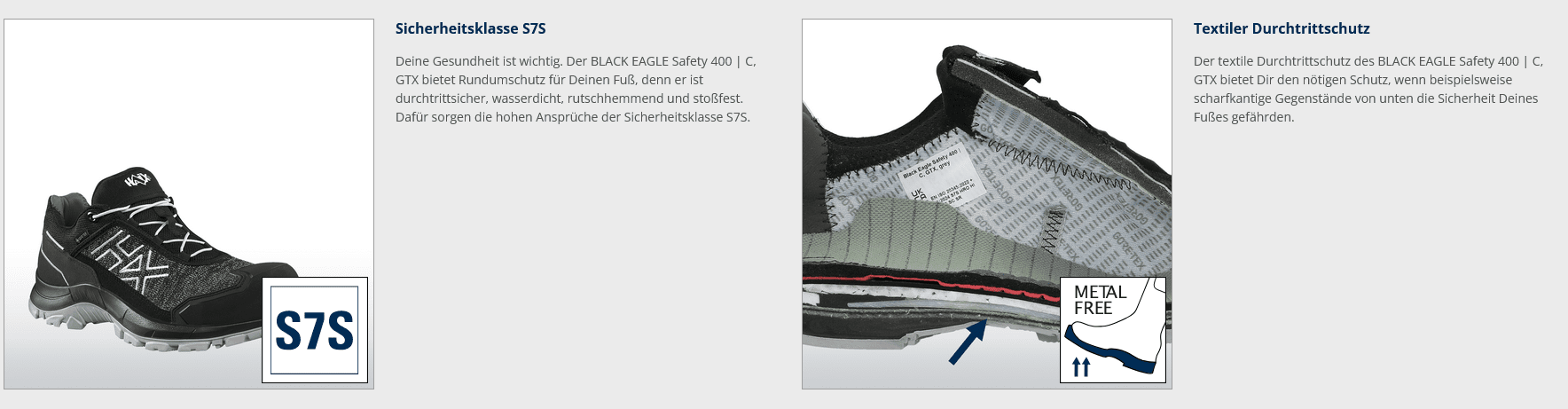 BeschreibungMerkmaleHerstellerProduktverantwortlicherBewertungen Beschreibung Merkmale DGUV 121-191 (BGR 191) orthopädische Einlagen Zehenschutzkappe Kunststoff GORE-TEX® Ja Zwischensohle "No-Metall" Hersteller HAIX Schuhe Produktions und Vertriebs GmbH Auhofstr. 10 84048 Mainburg Produktverantwortlicher info@haix.de Bewertungen Geben Sie die erste Bewertung ab Es liegen keine Bewertungen vor Tags Black Eagle 56 Haix 153 Sicherheitsschuh 90 sportlich 127