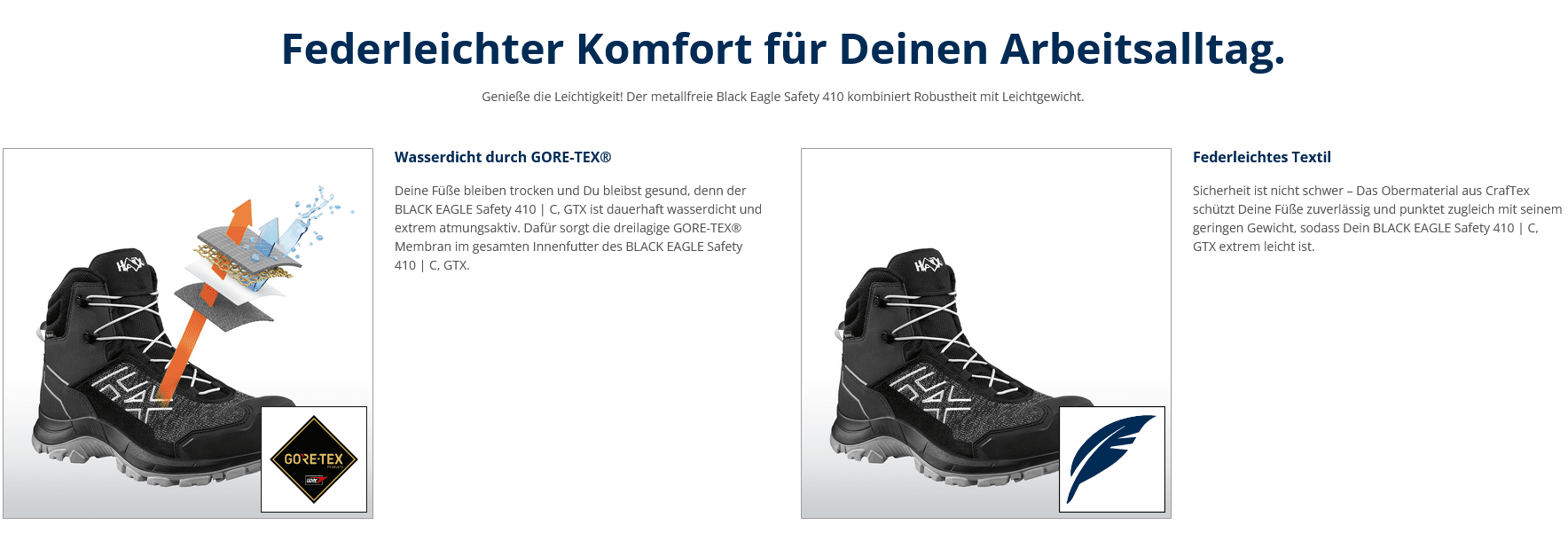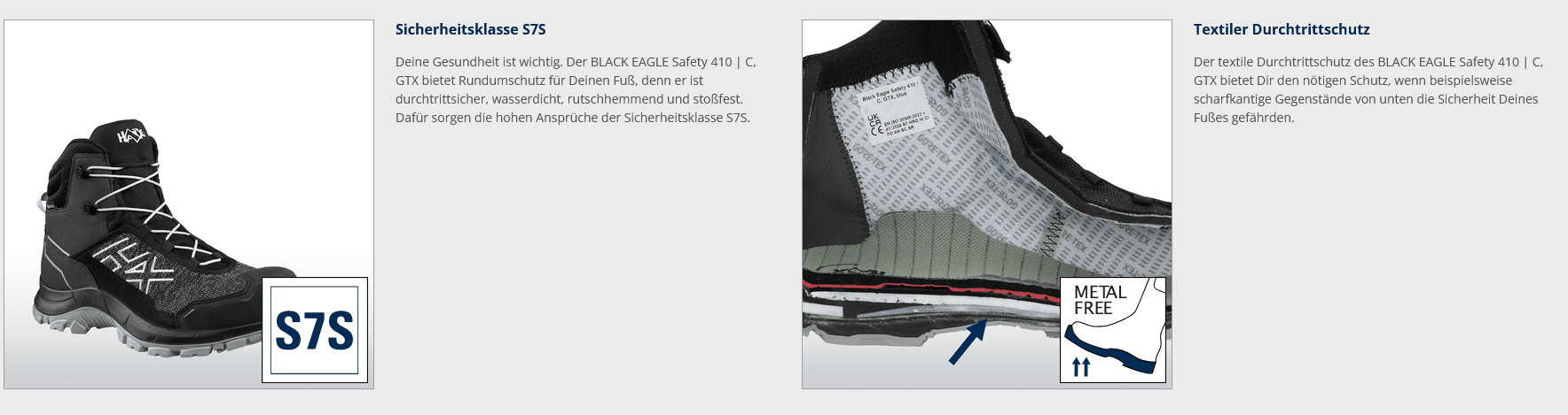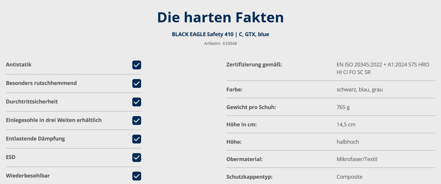 BeschreibungMerkmaleHerstellerProduktverantwortlicherBewertungen Beschreibung Merkmale Zehenschutzkappe Kunststoff Zwischensohle "No-Metall" DGUV 121-191 (BGR 191) orthopädische Einlagen GORE-TEX® Ja Sicherheitsklasse EN 20345 S7S Hersteller HAIX Schuhe Produktions und Vertriebs GmbH Auhofstr. 10 84048 Mainburg Produktverantwortlicher info@haix.de Bewertungen Geben Sie die erste Bewertung ab Es liegen keine Bewertungen vor Tags Black Eagle 56 Haix 153 Sicherheitsschuh 90 sportlich 127
